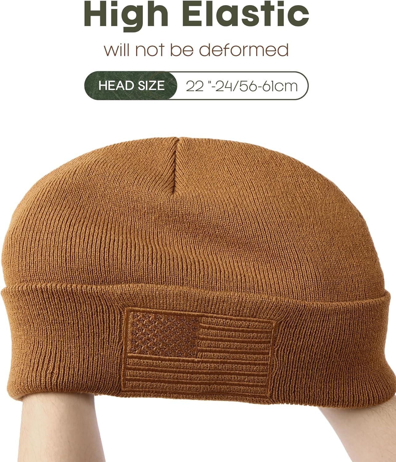 FURTALK American Flag Embroidered Beanie for Men Women Winter Hat Knitted Unisex Skull Cap(Brown)