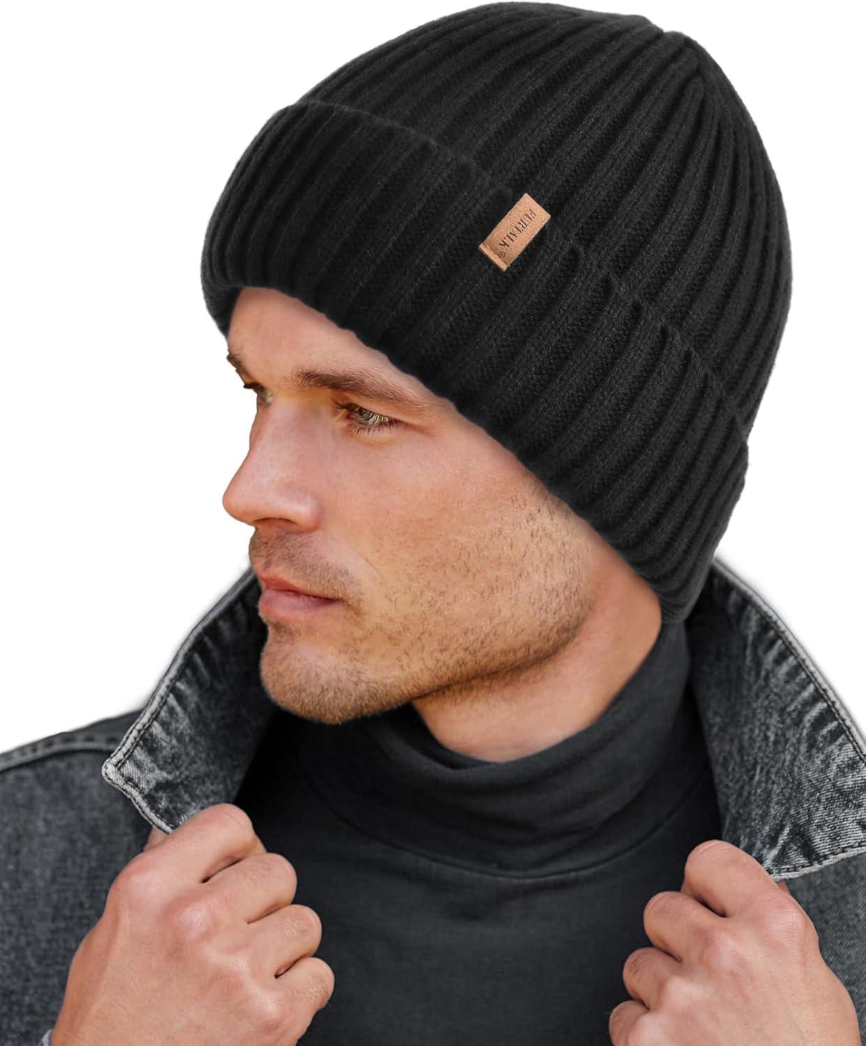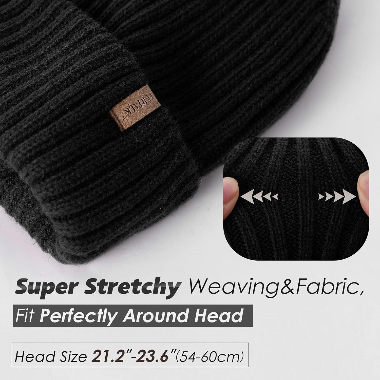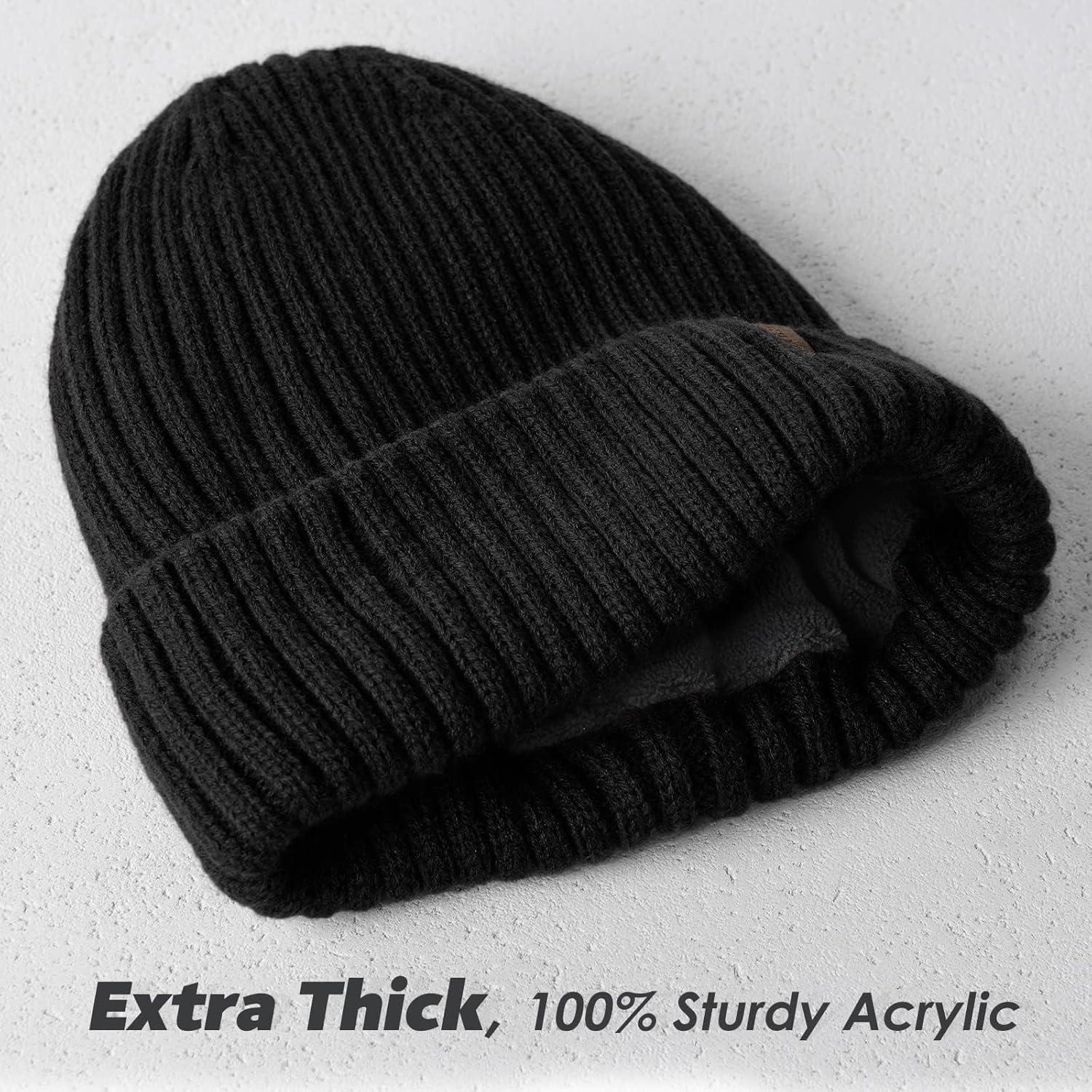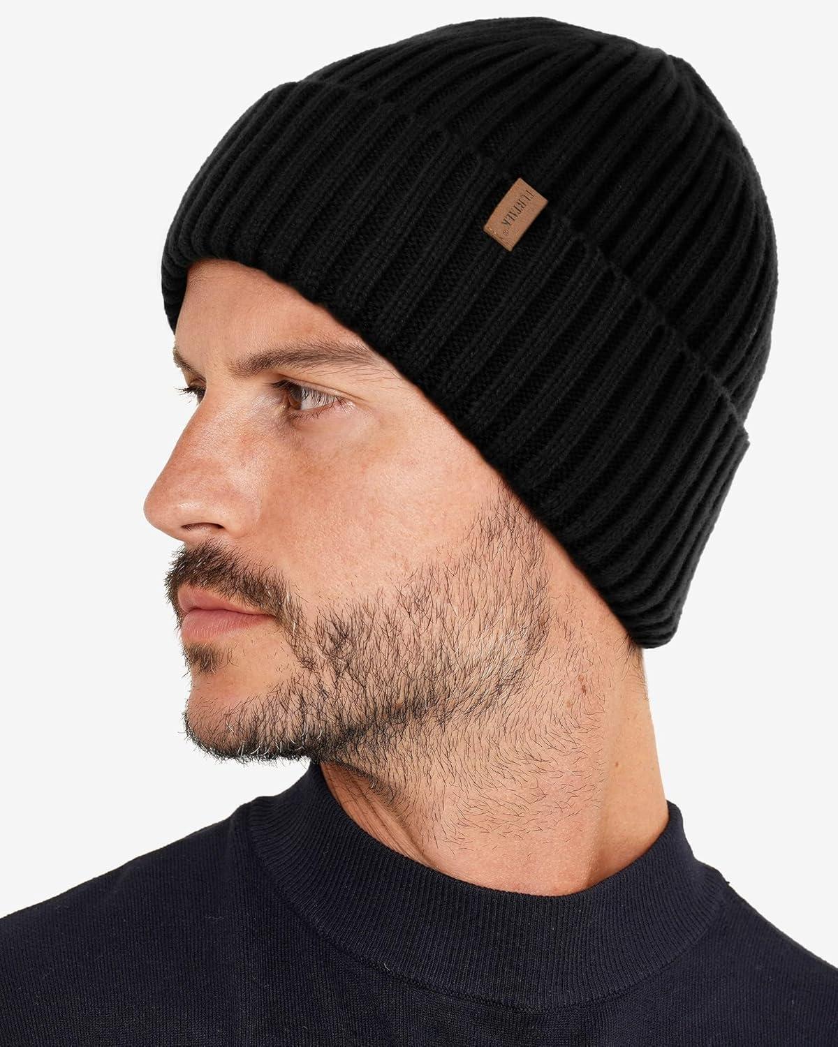 FURTALK Double Layer Winter Hats for Men Women Beanie Thick Cuffed Warm Ski Hats(Black)