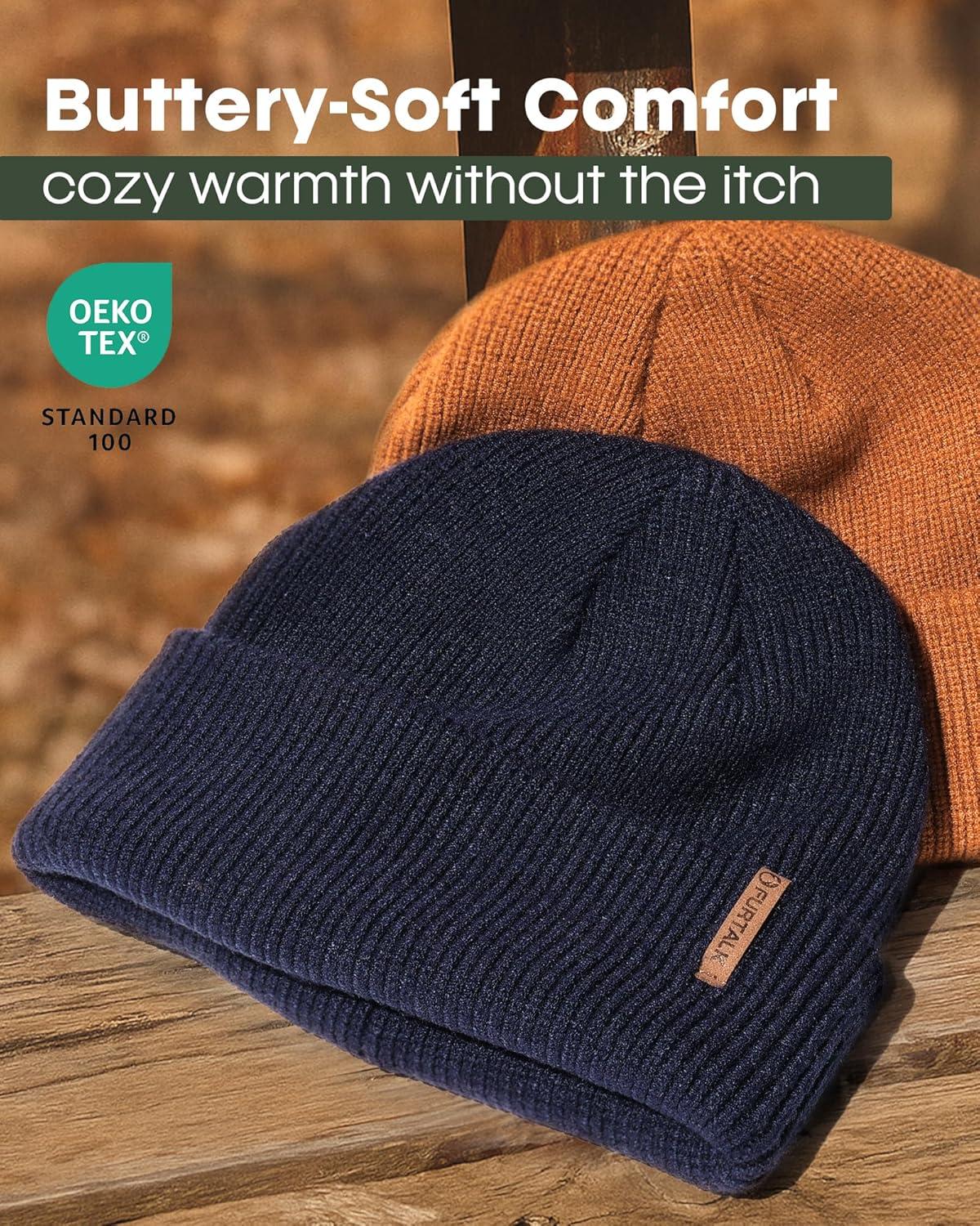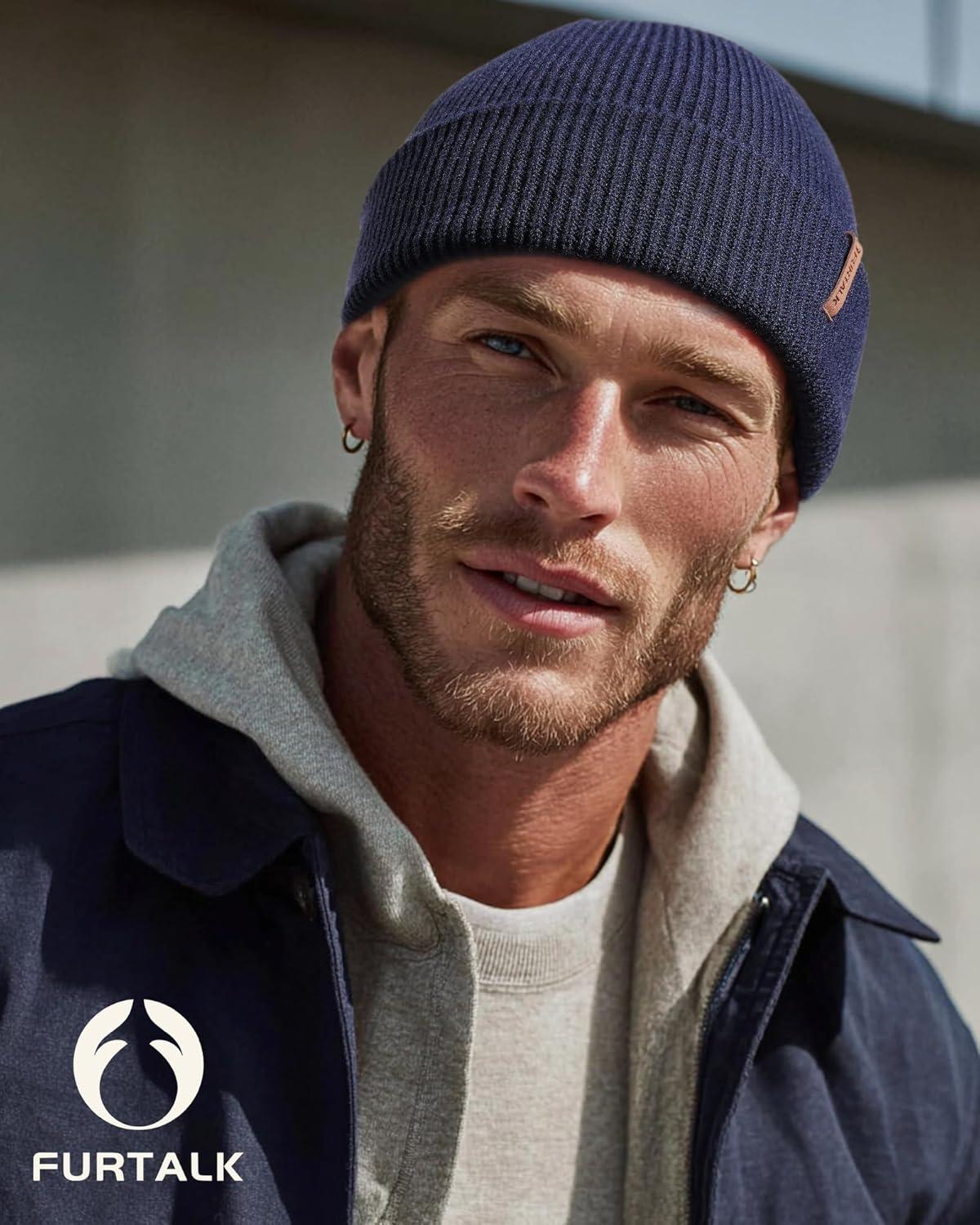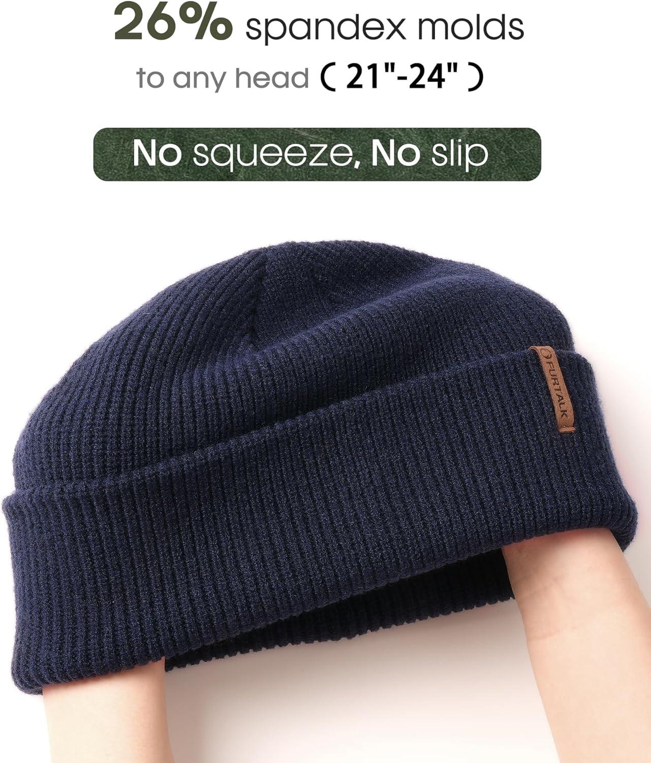 FURTALK Fisherman Beanie for Men Women 2 Styles Cuffless or Cuffed Knitted Unisex Winter Hat Outdoor All-Day Warmth(Navy)