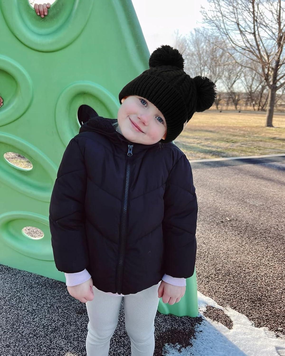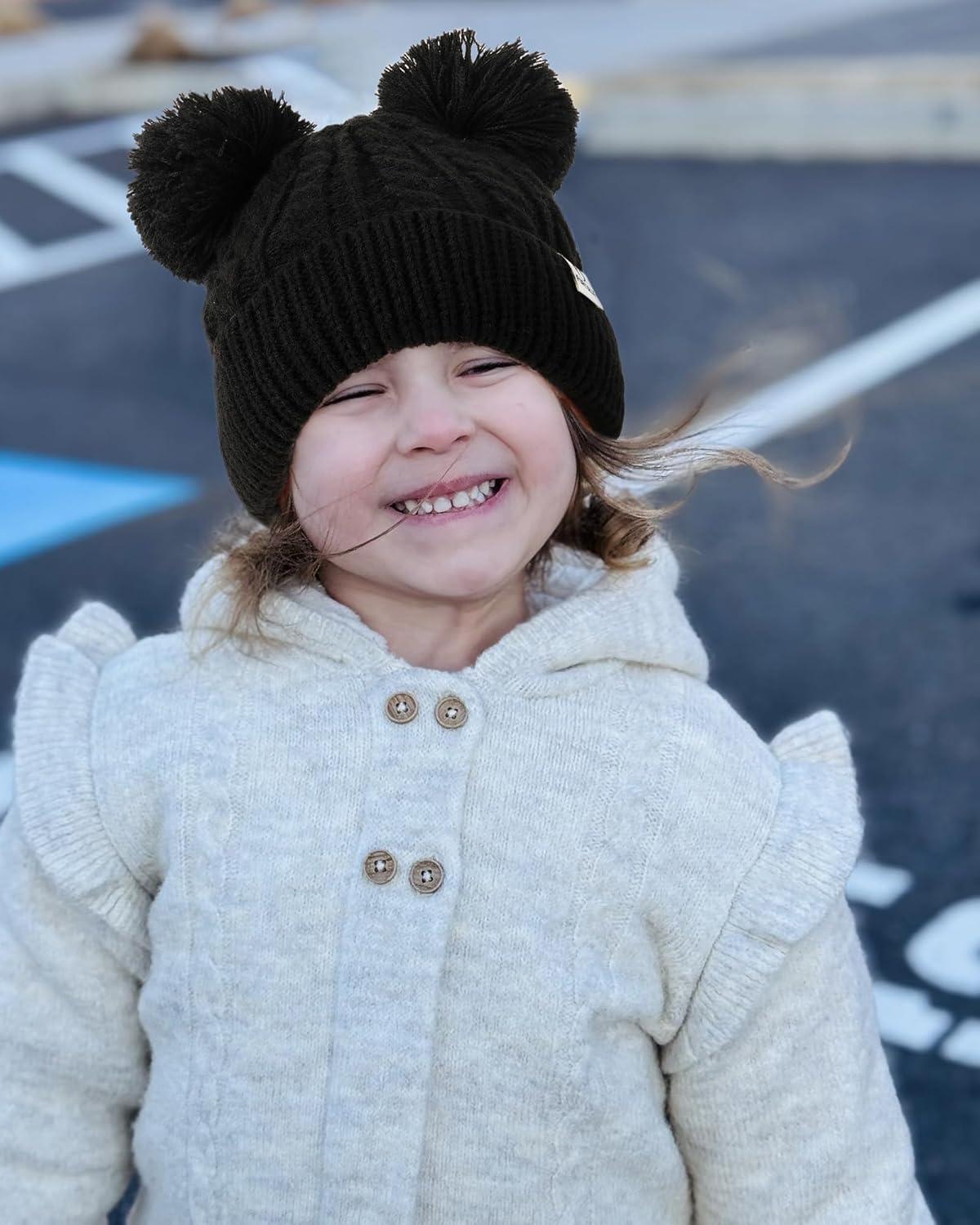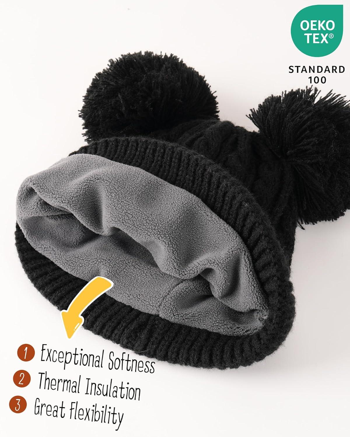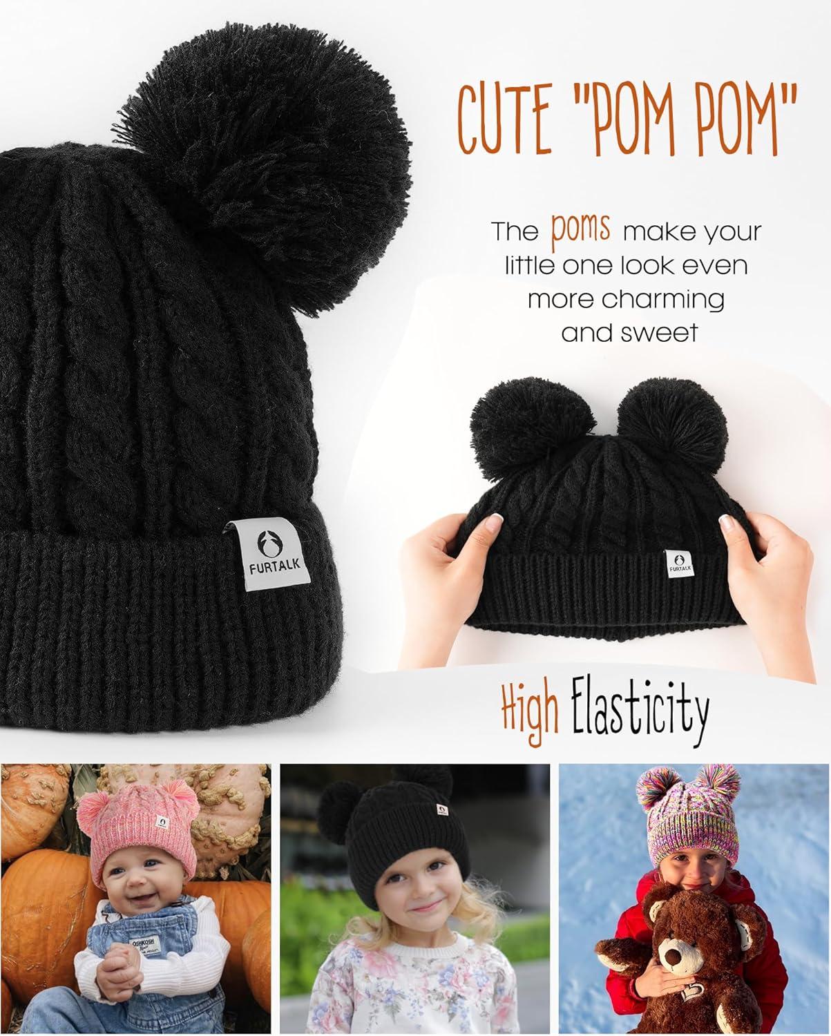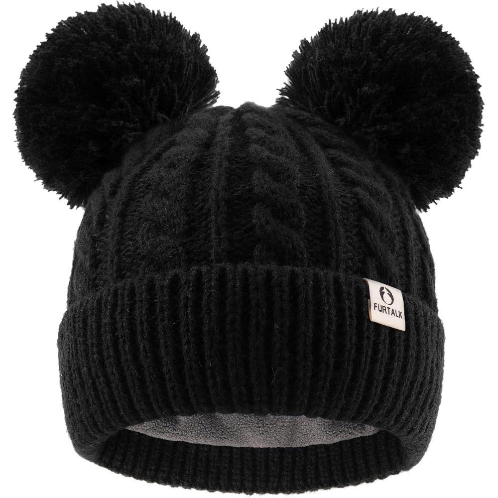 FURTALK Girls Winter Beanie Hat with Double Knitted Pom Pom Warm Fleece Lined Knit Soft Skull Cap for Toddler Kids(Black)