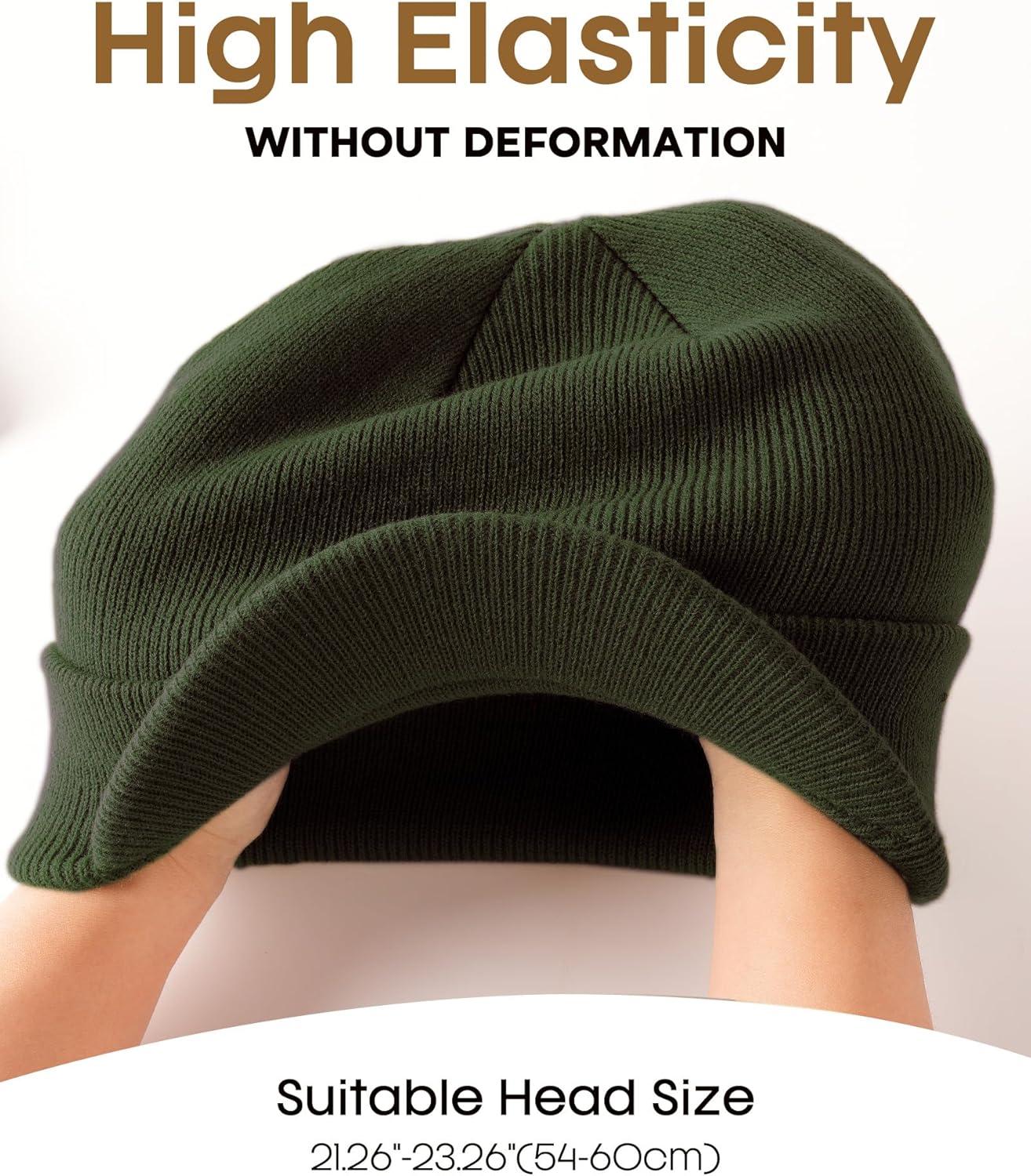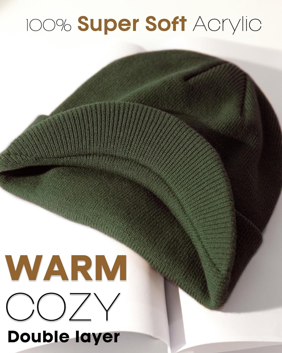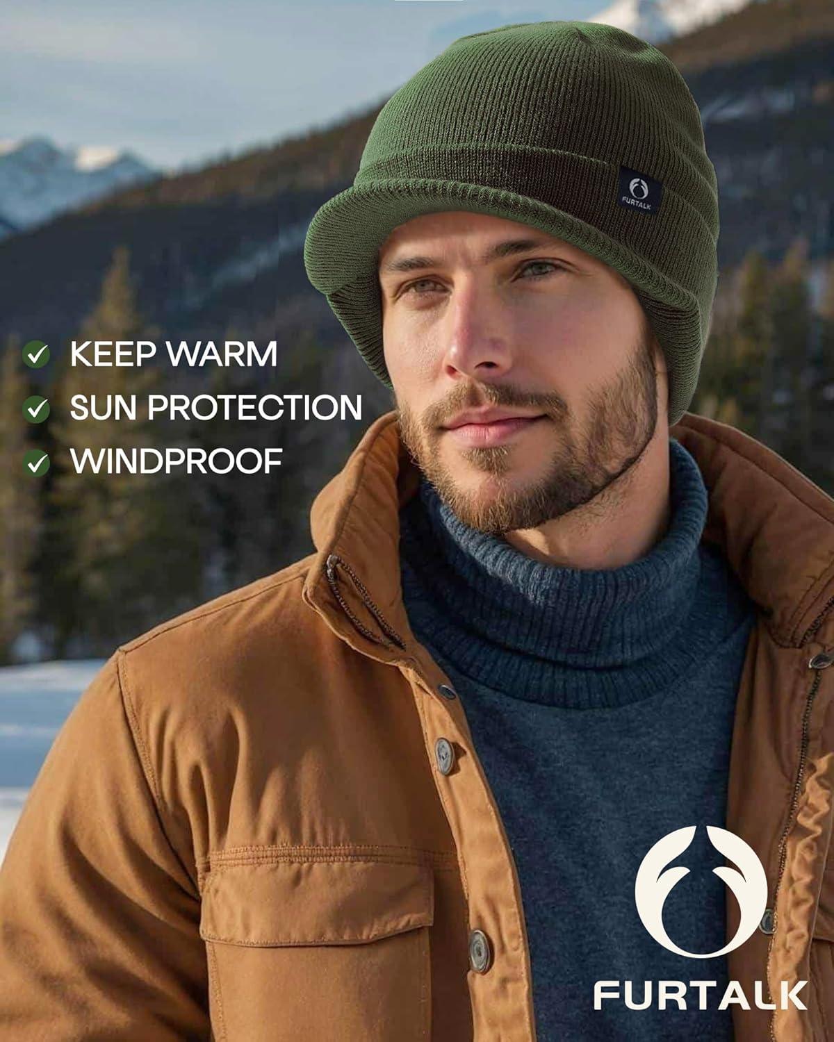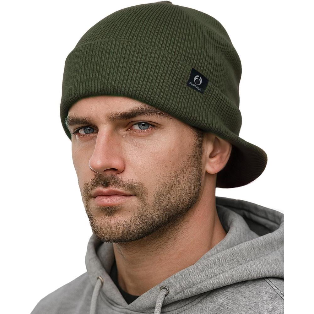 FURTALK Mens Beanie with Brim Thick Knitted Acrylic Beanie for Men Women Warm Outdoor Winter Hat(Green)