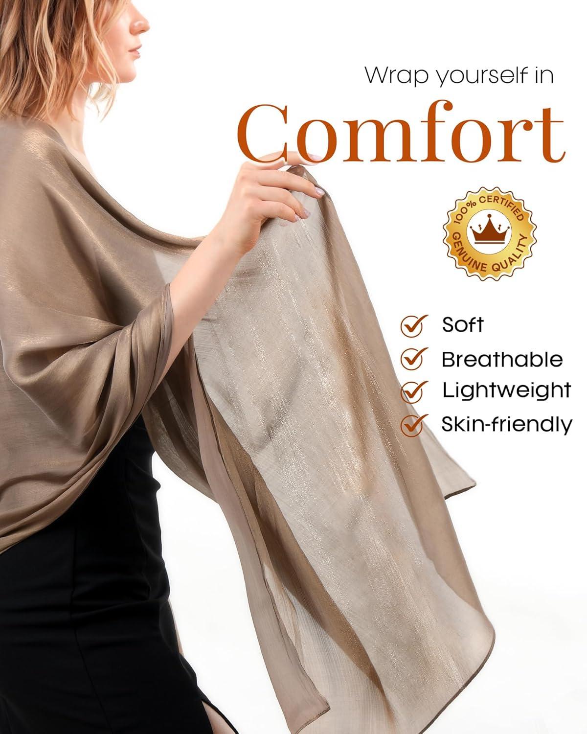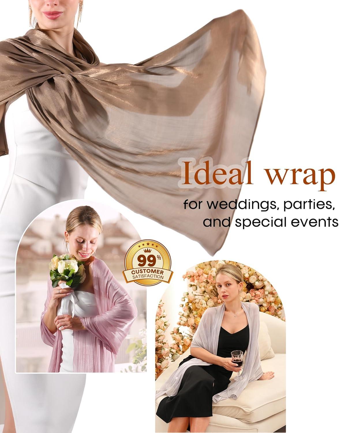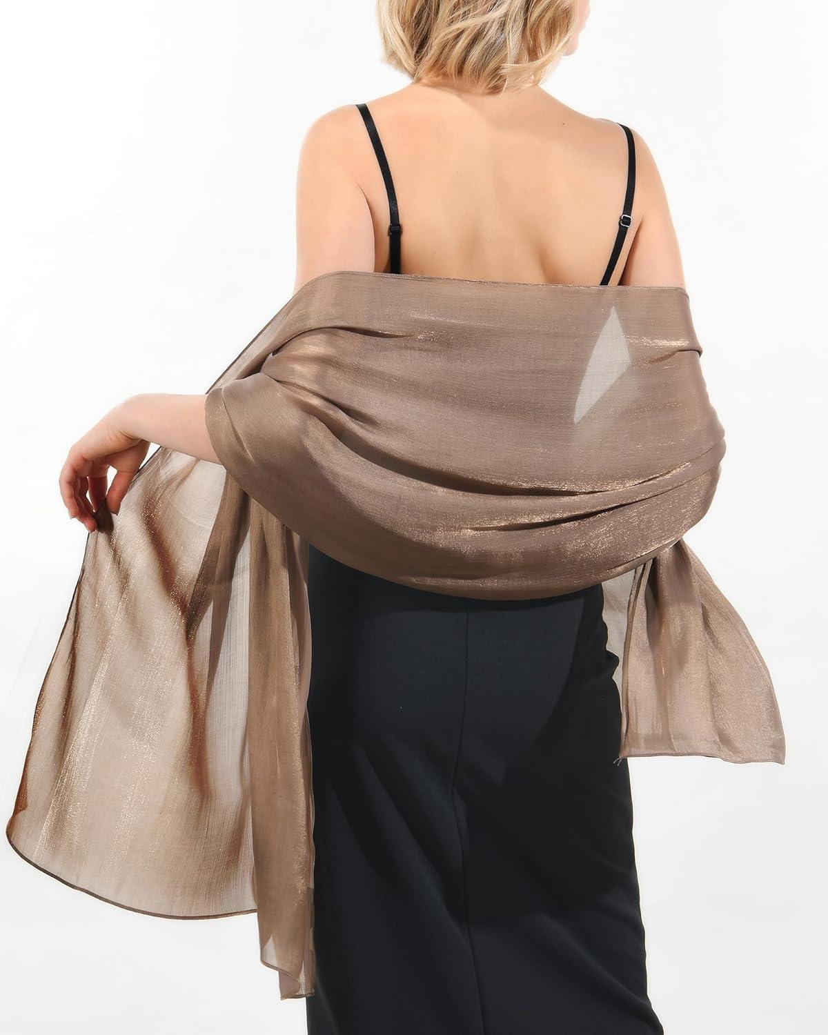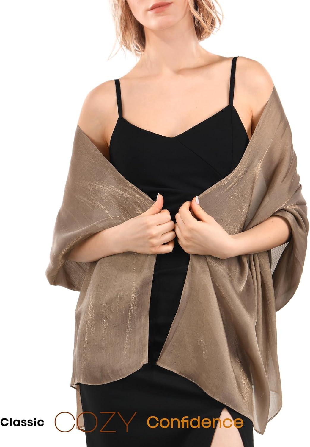 FURTALK Shawls and Wraps for Evening Dresses Sparkly Soft Wedding Party Bridesmaid Scarves for Women(Brown)