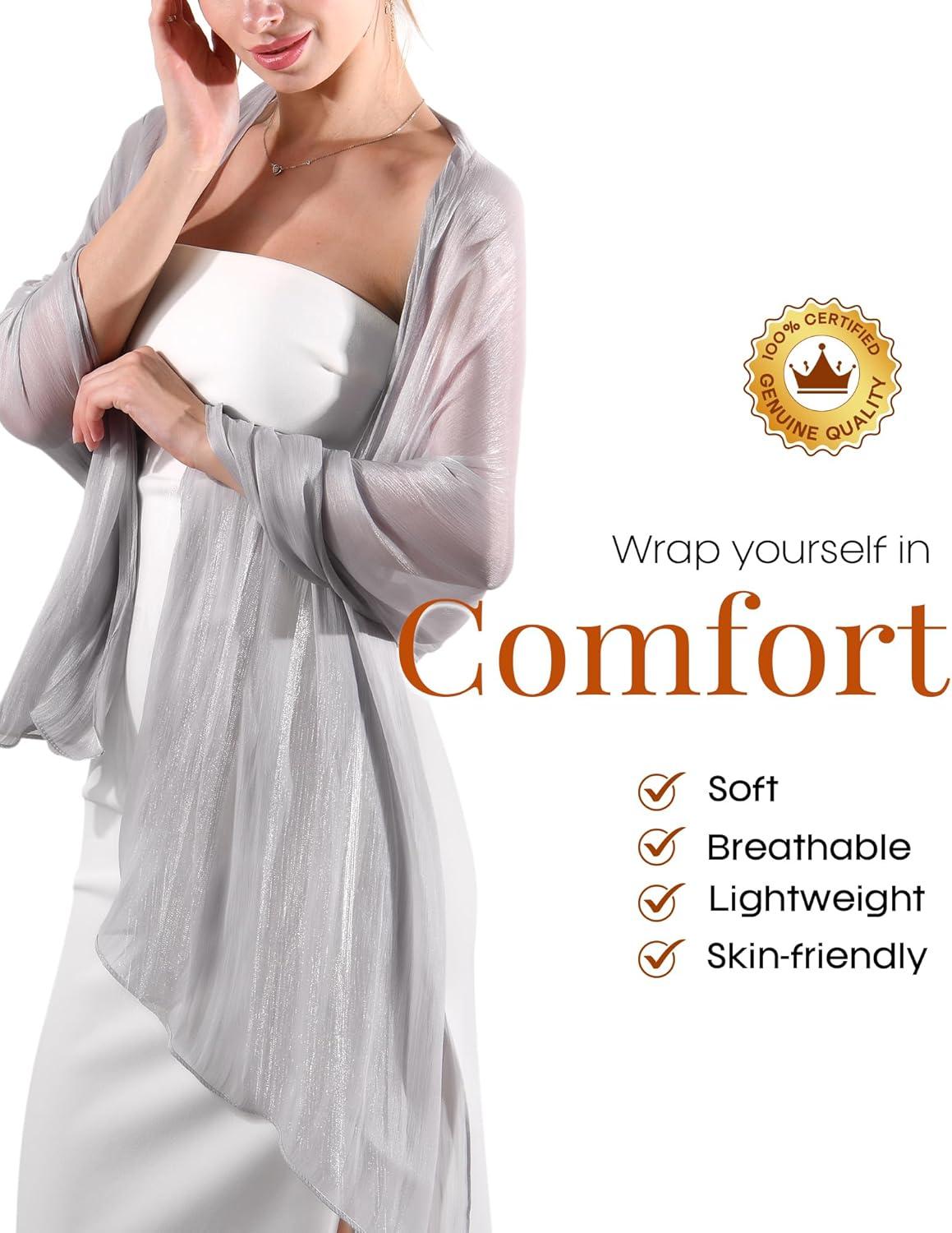 FURTALK Shawls and Wraps for Evening Dresses Sparkly Soft Wedding Party Bridesmaid Scarves for Women(Grey)