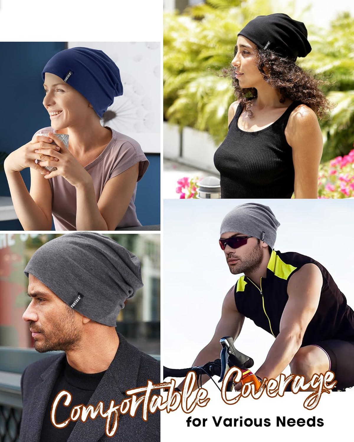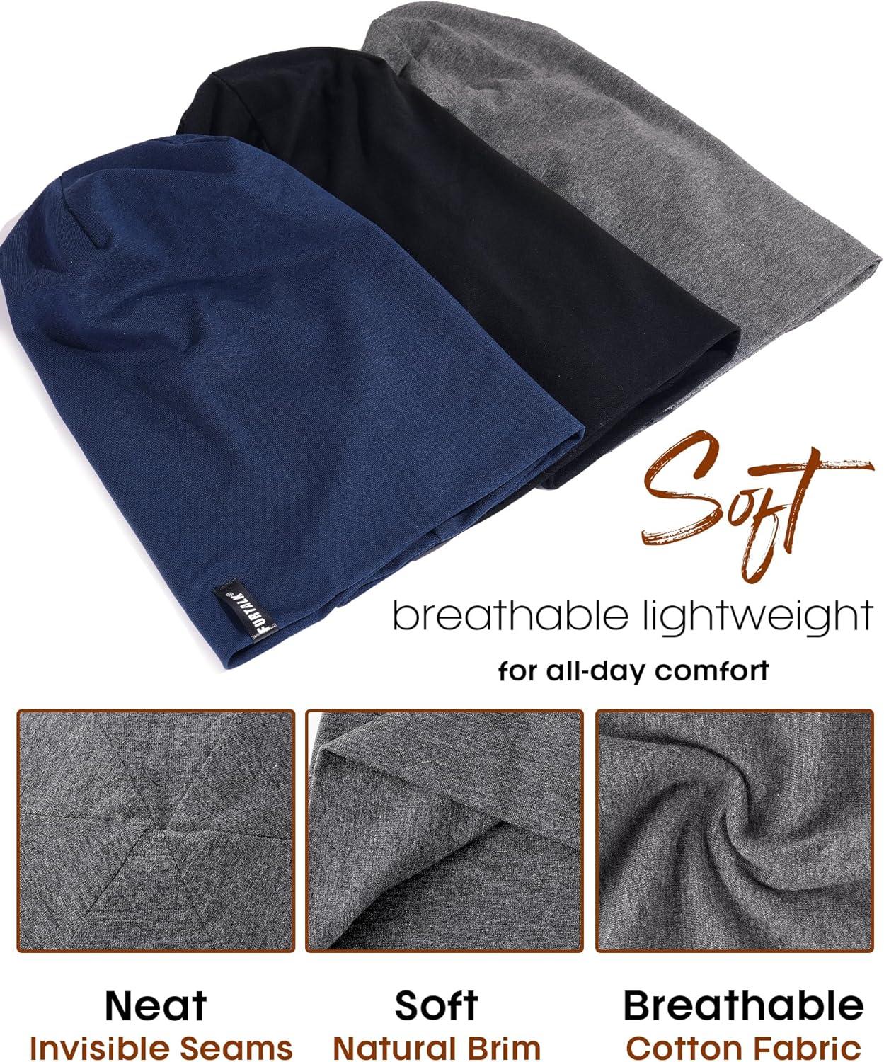 FURTALK Slouchy Beanie for Men Women Breathable Cotton Summer Beanie Unisex Running Sleeping Skull Caps Chemo Headwear(Black+drak Grey+navy Blue)