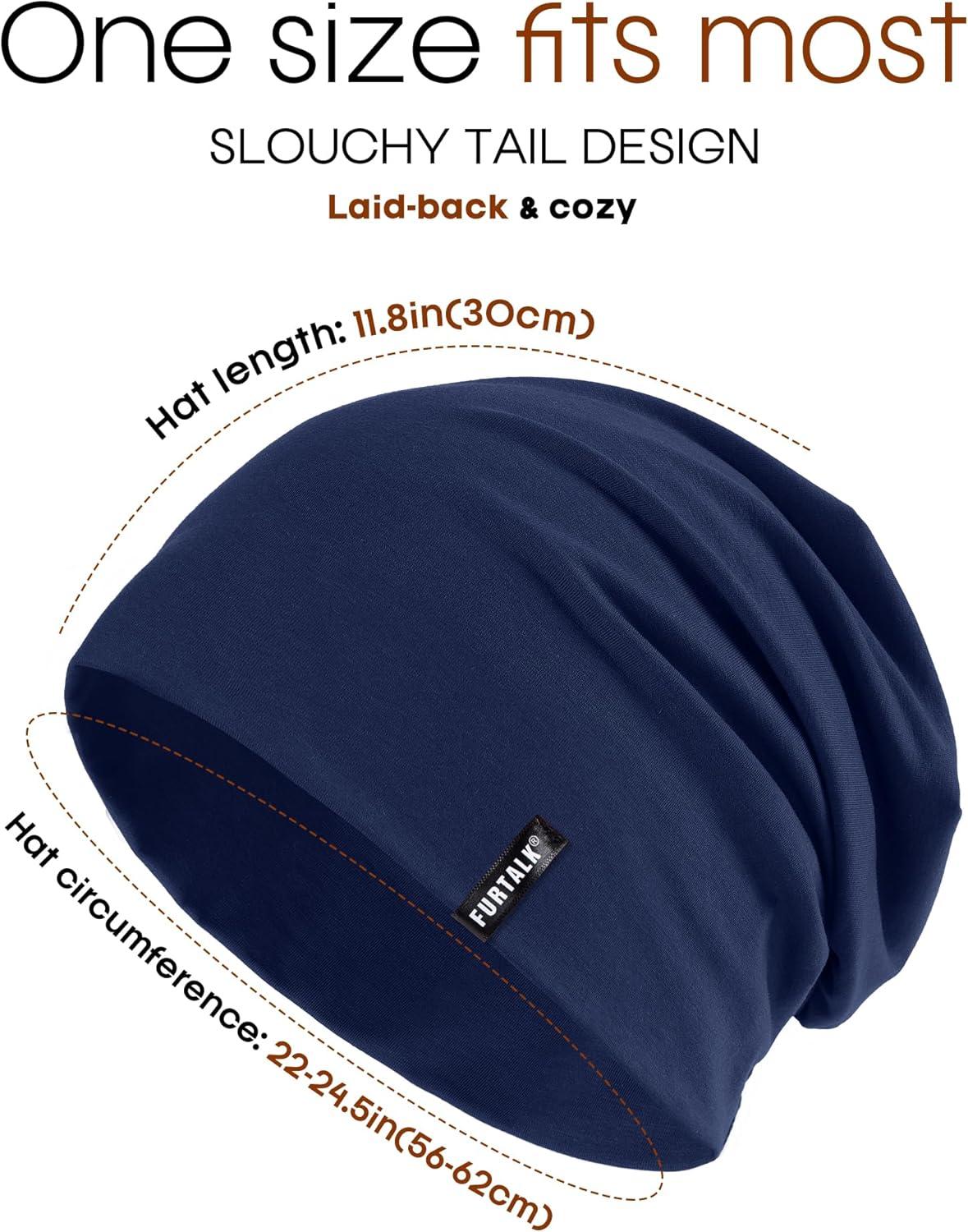 imageFURTALK Slouchy Beanie for Men Women Breathable Cotton Summer Beanie Unisex Running Sleeping Skull Caps Chemo HeadwearBlackdrak Greynavy Blue