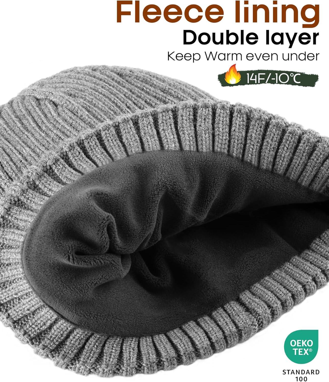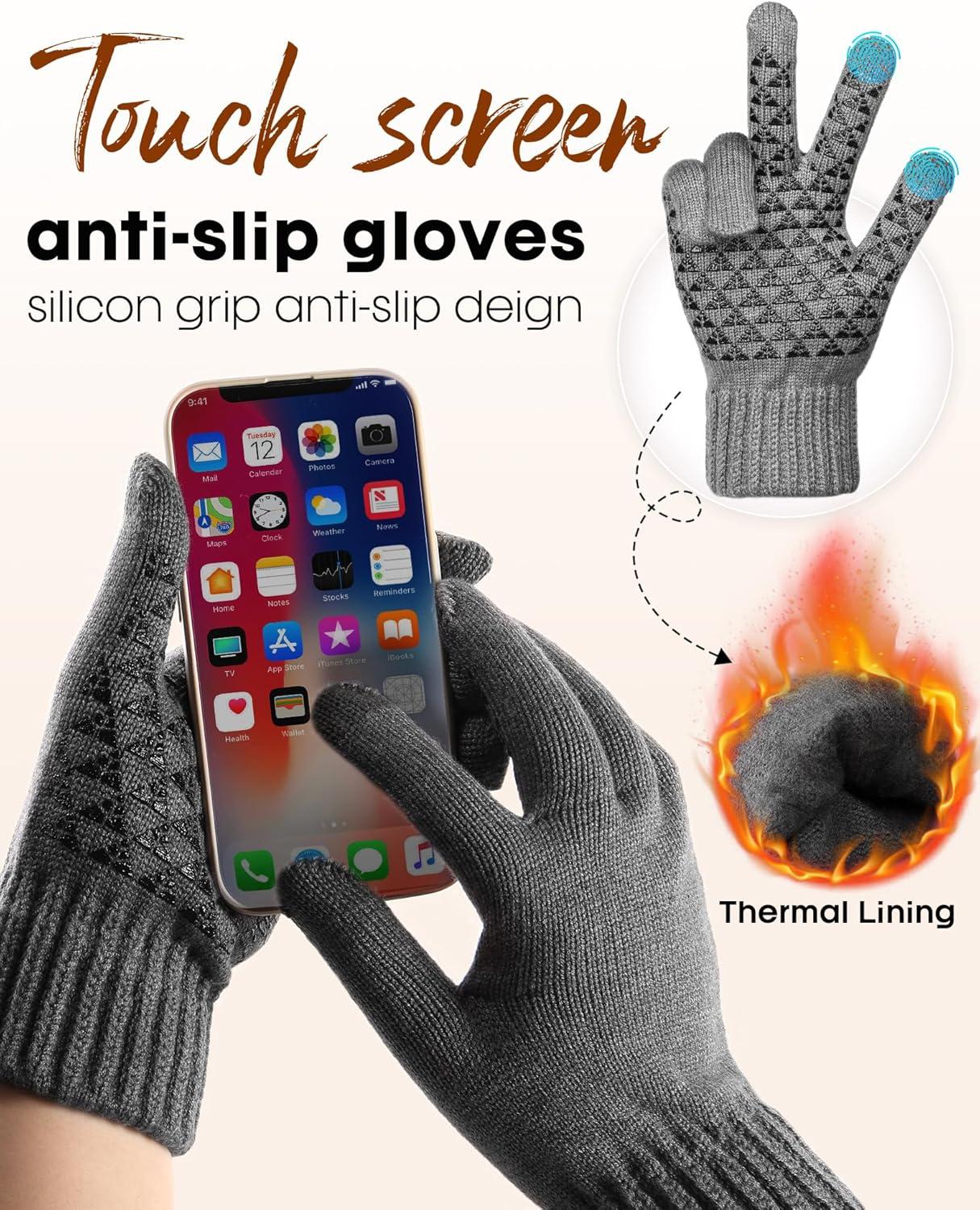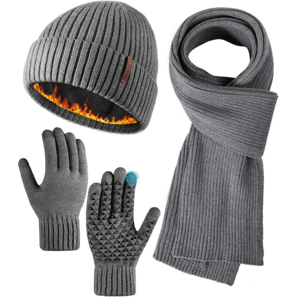FURTALK Winter Hat Long Scarf Touchscreen Gloves Set Fleece Lined Warm Knit Beanie for Men Women(Grey)