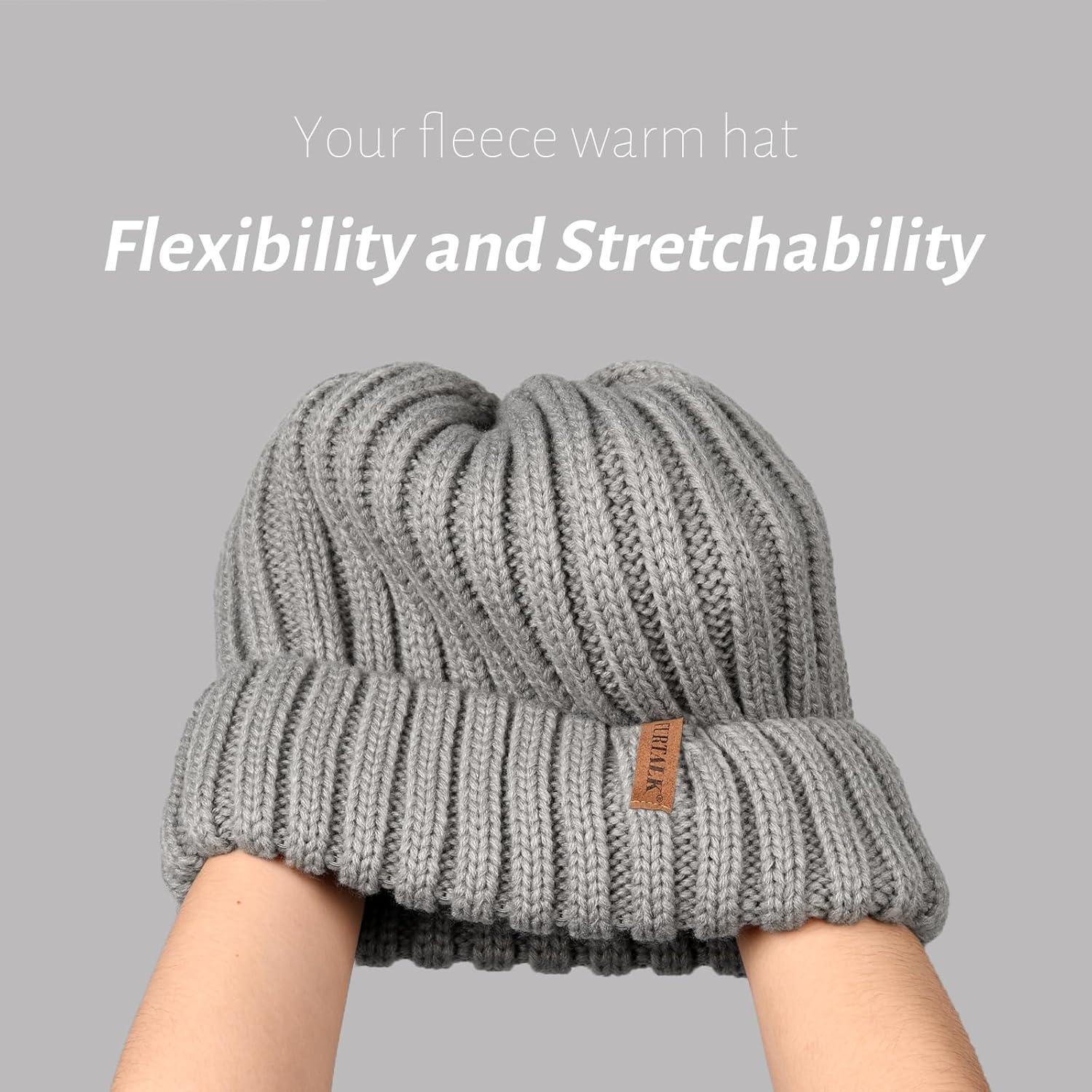 FURTALK Winter Hats for Women Fleece Lined Beanie Knit Chunky Womens Snow Cap(Grey)
