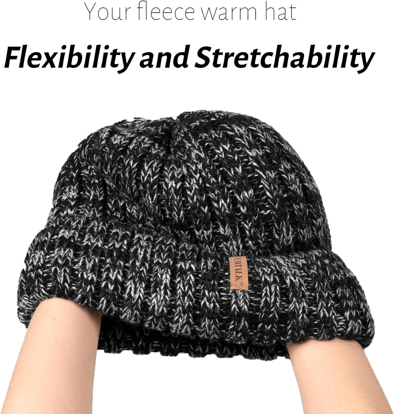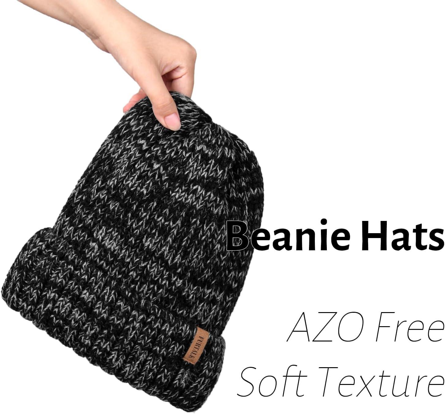 FURTALK Winter Hats for Women Fleece Lined Beanie Knit Chunky Womens Snow Cap(Mix Black)