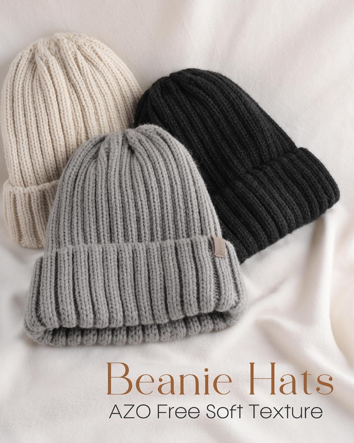 FURTALK Winter Hats for Women Knitted Beanie Fashinable Winter Skull Caps(Black+beige+grey)