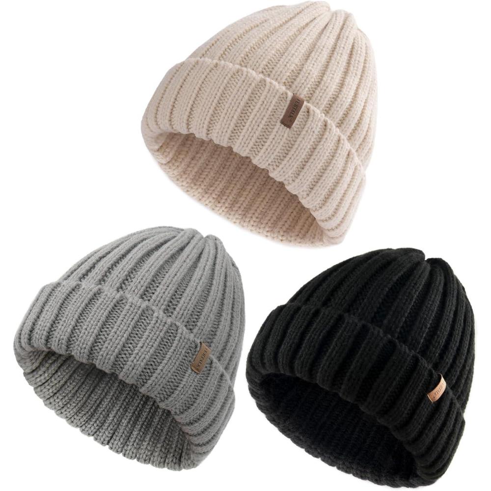 FURTALK Winter Hats for Women Knitted Beanie Fashinable Winter Skull Caps(Black+beige+khaki)