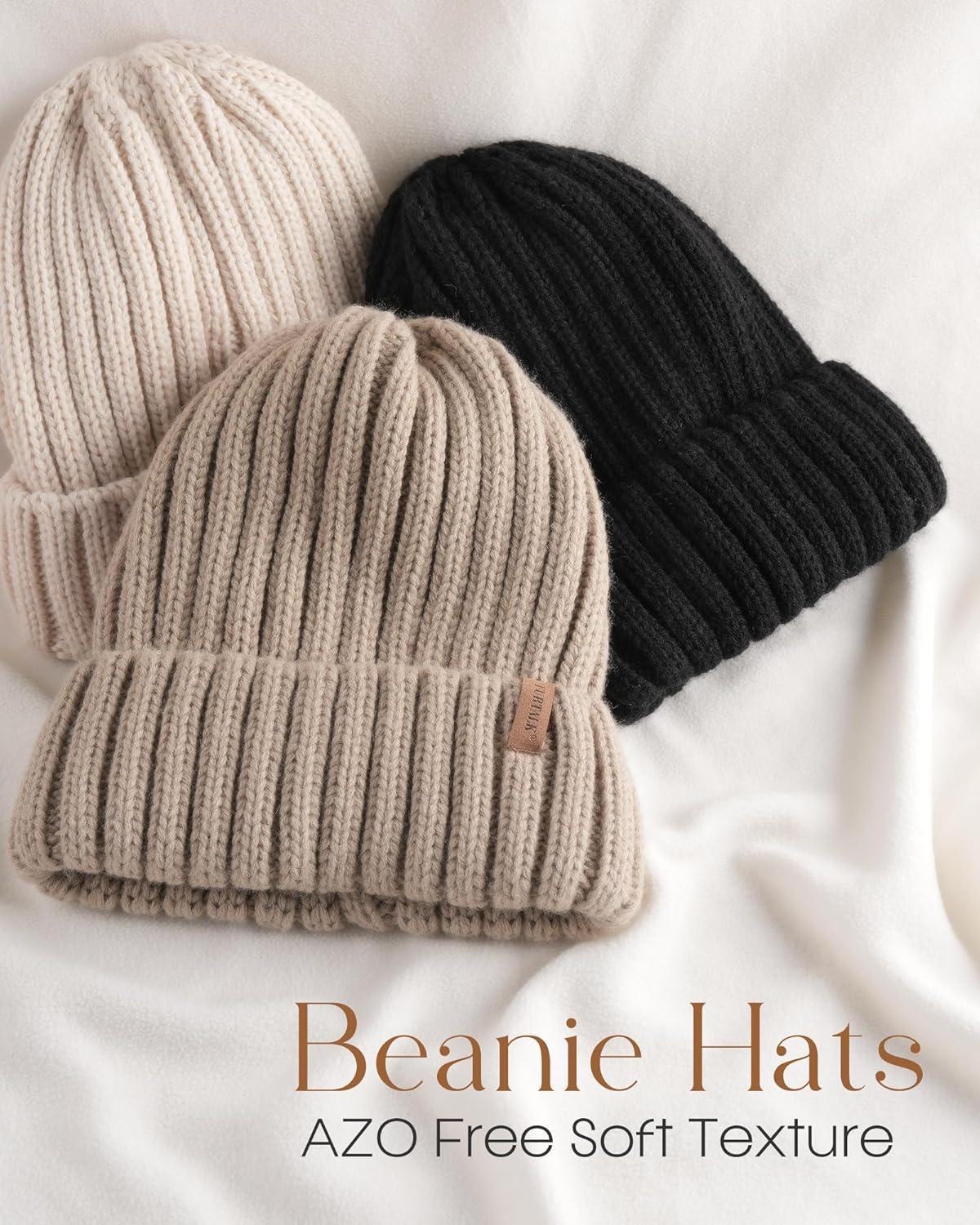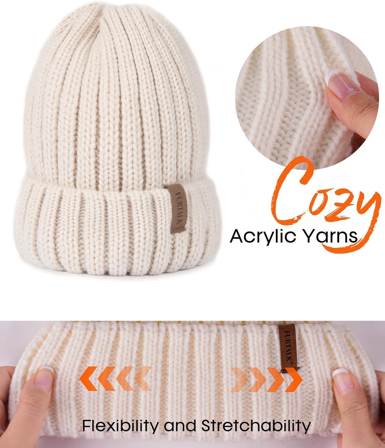 FURTALK Winter Hats for Women Knitted Beanie Fashinable Winter Skull Caps(Black+beige+khaki)