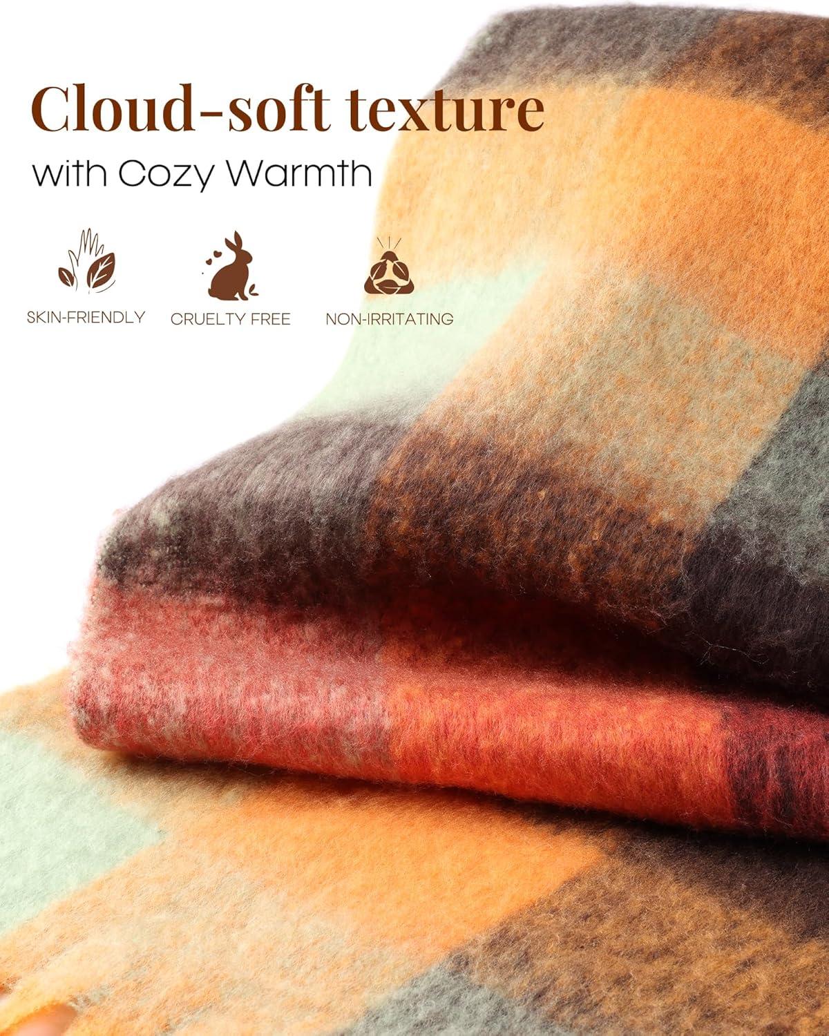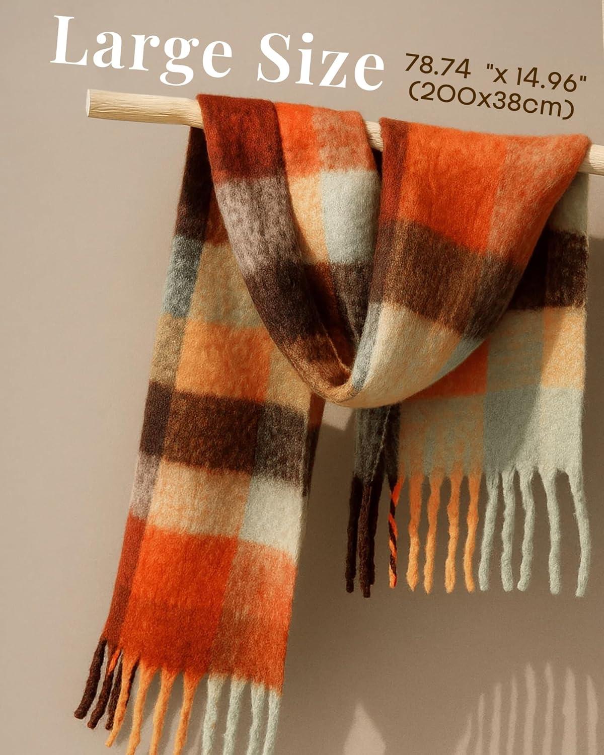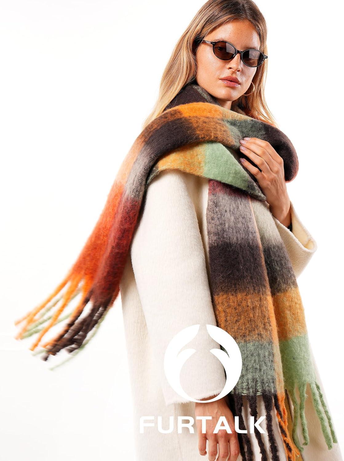FURTALK Winter Plaid Scarf for Women, Oversized Chunky Thick Blanket Scarves Warm Colorful Long Wrap(Orangegrey)