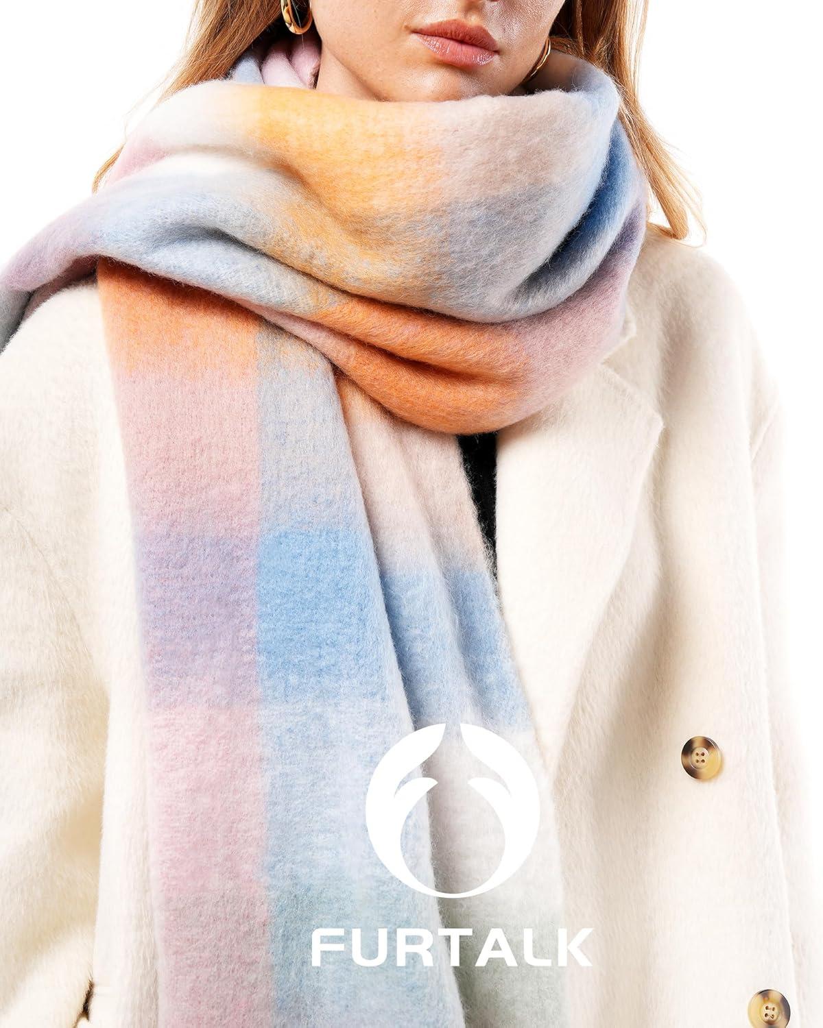FURTALK Winter Plaid Scarf for Women, Oversized Chunky Thick Blanket Scarves Warm Colorful Long Wrap(Orangegrey)
