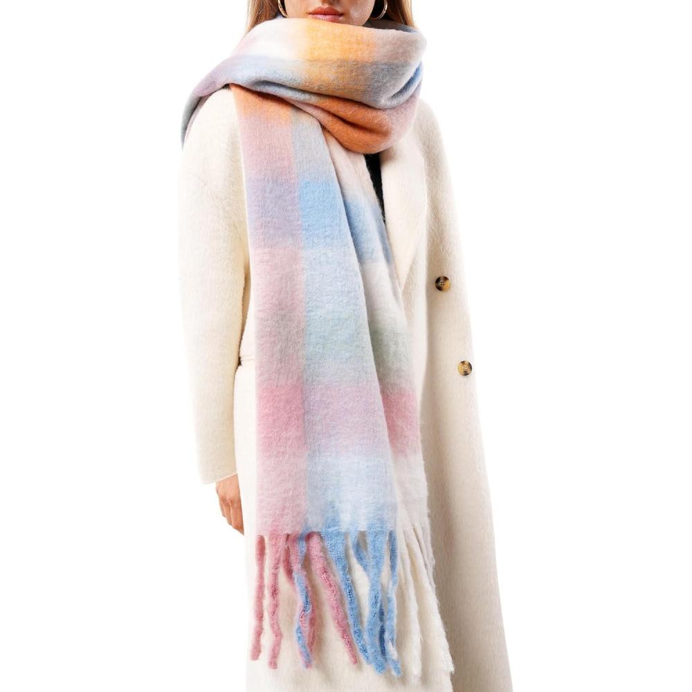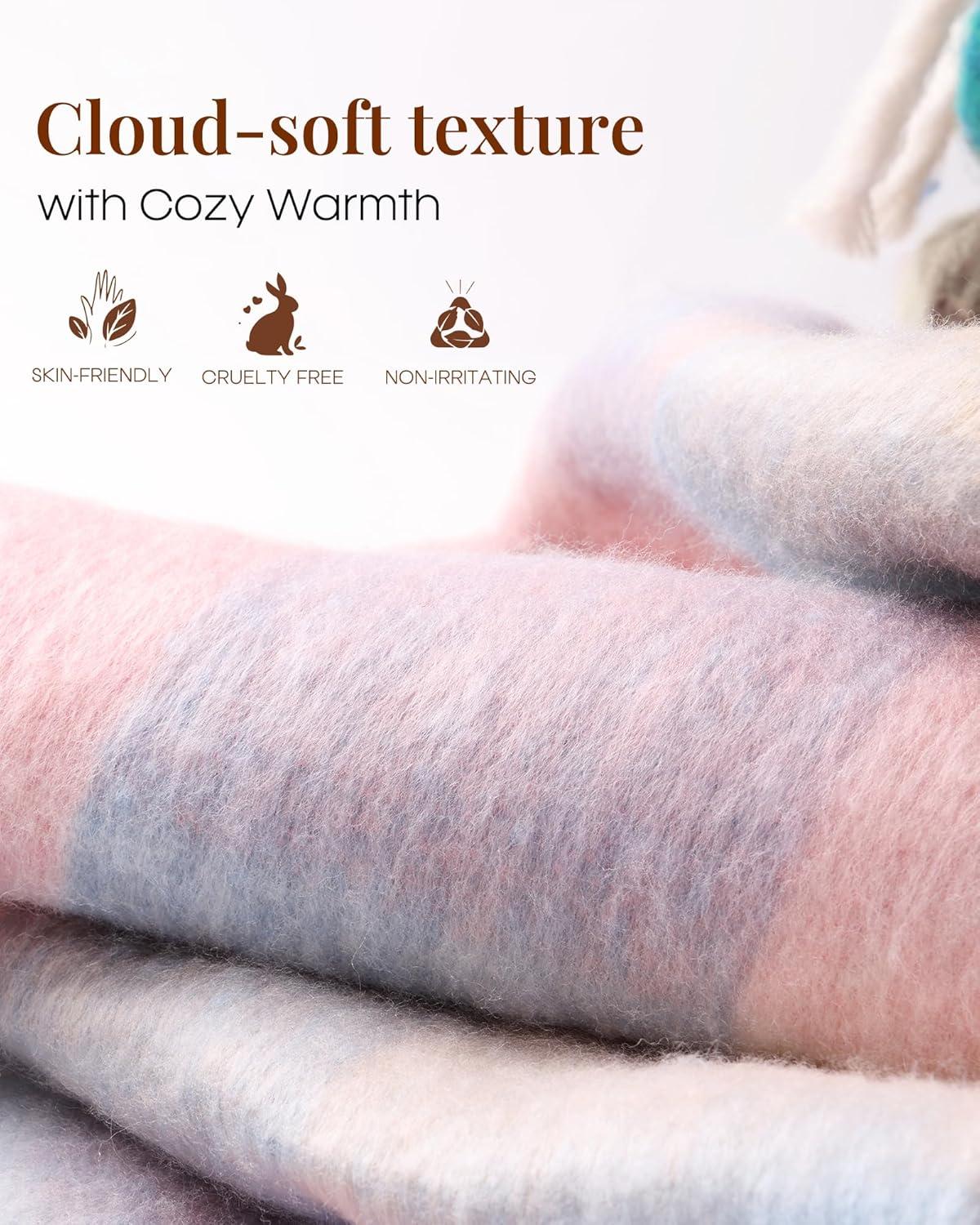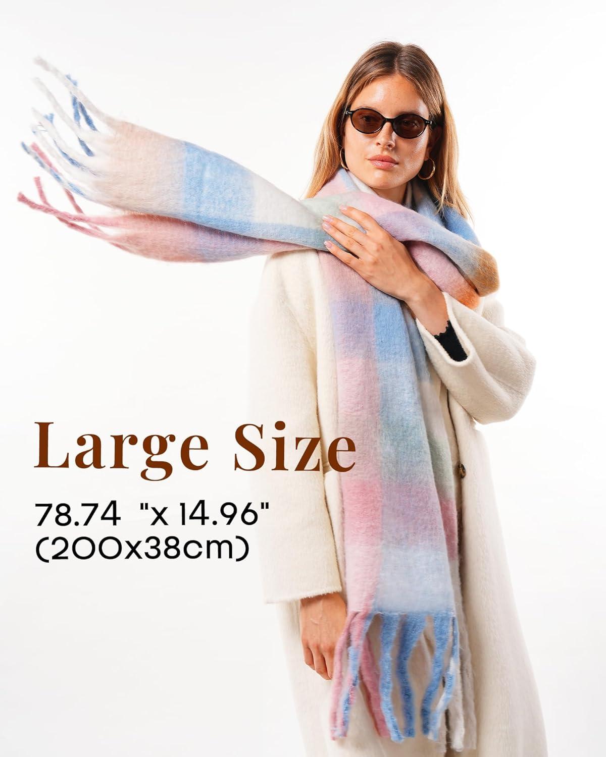 FURTALK Winter Plaid Scarf for Women, Oversized Chunky Thick Blanket Scarves Warm Colorful Long Wrap(Pinkgrey)