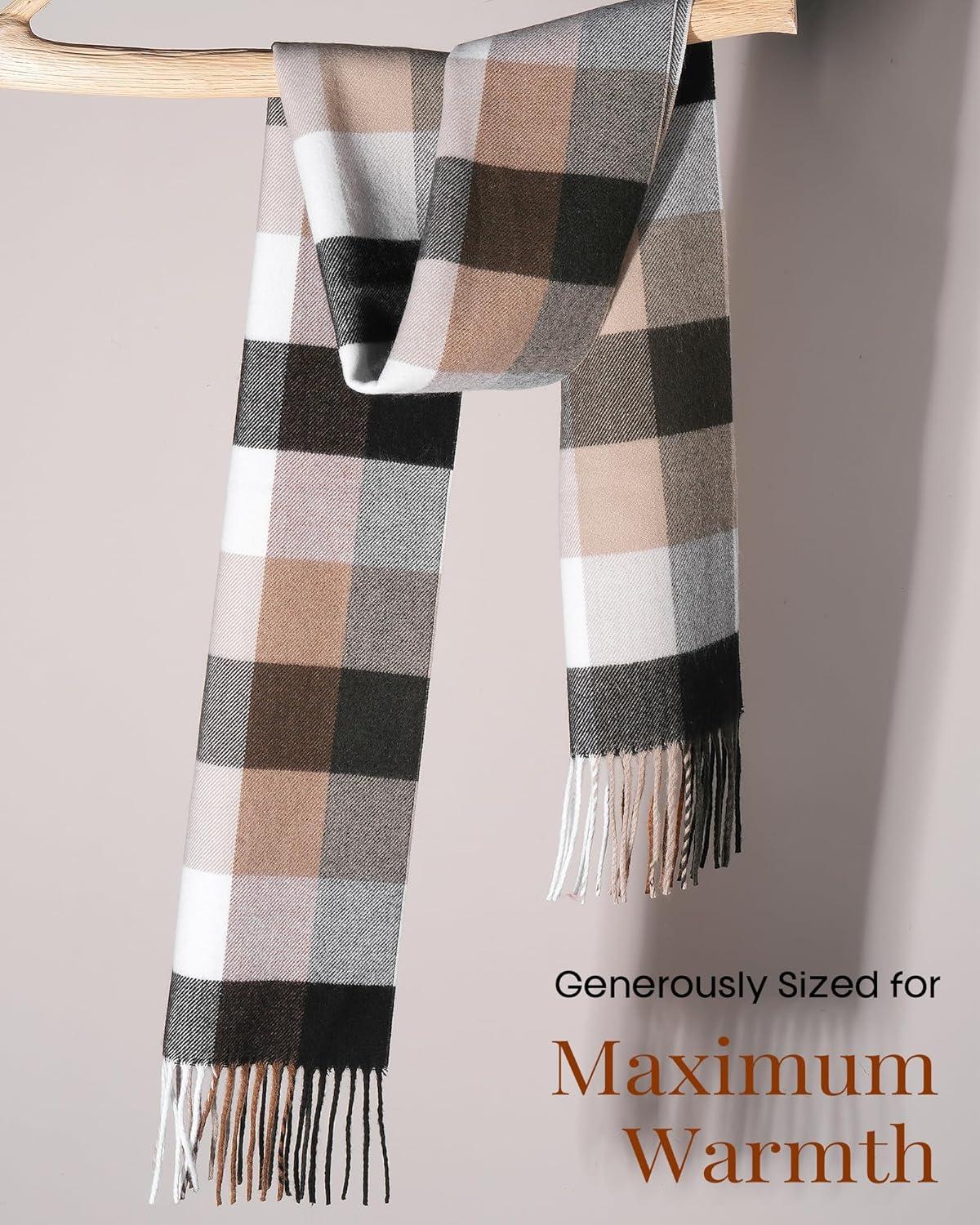 imageFURTALK Winter Scarf for Men Long Soft Warm Scarves Plaid Tassel Scarf for MenBrownbeige