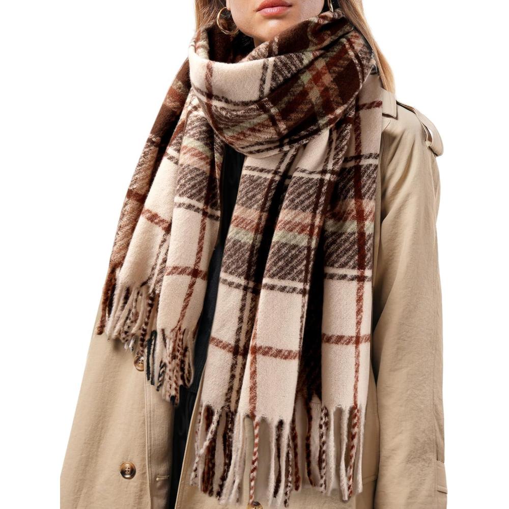 FURTALK Winter Warm Scarf for Women Cashmere Feel Shawl Wraps Tassel Plaid Oversized Scarves(Beigebrown)