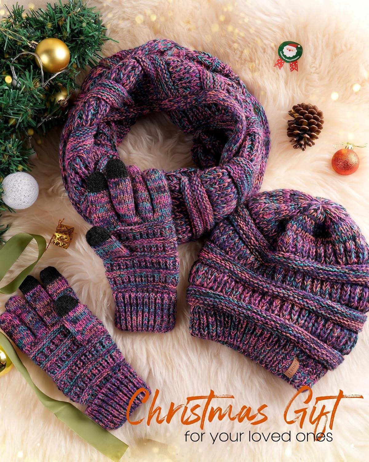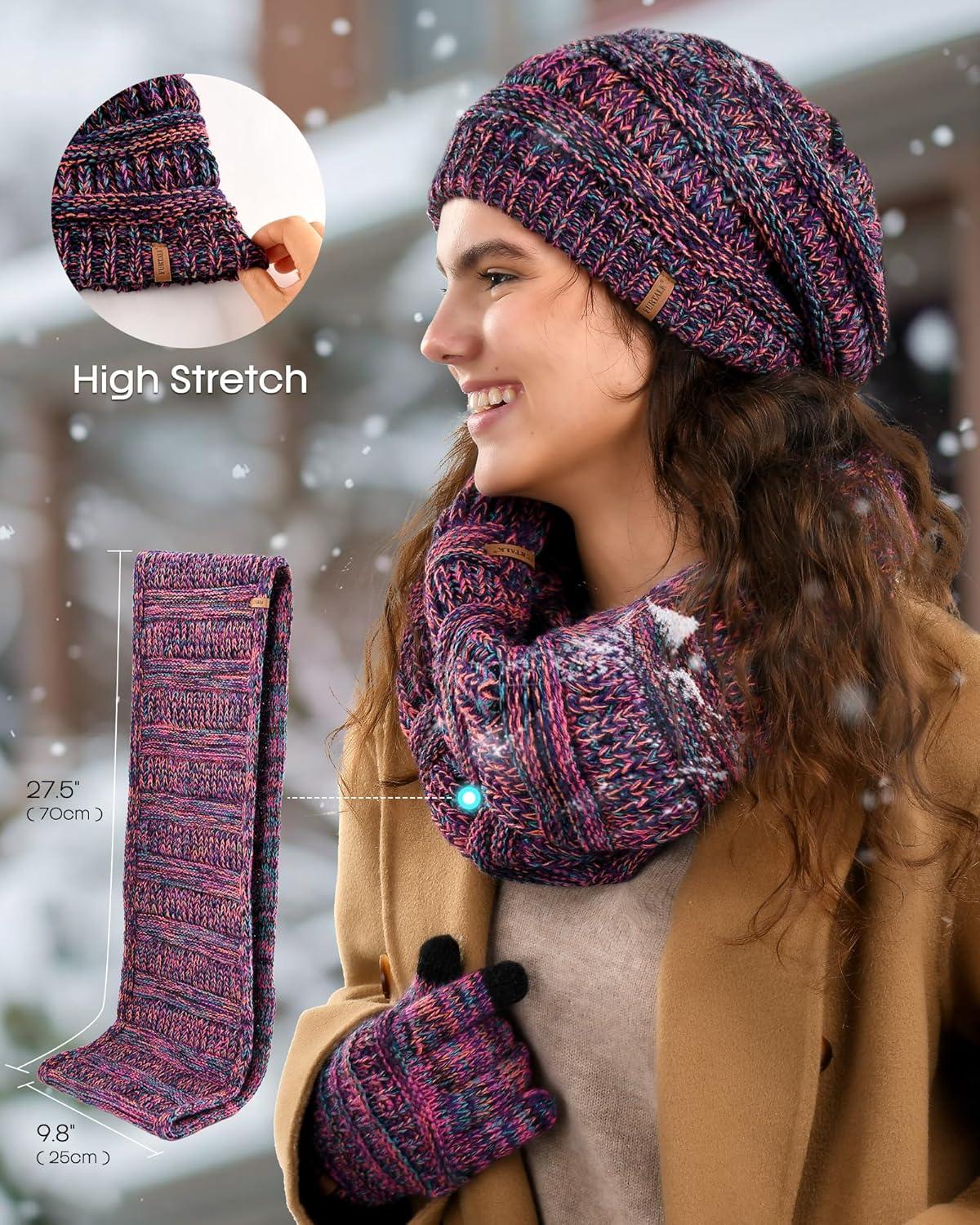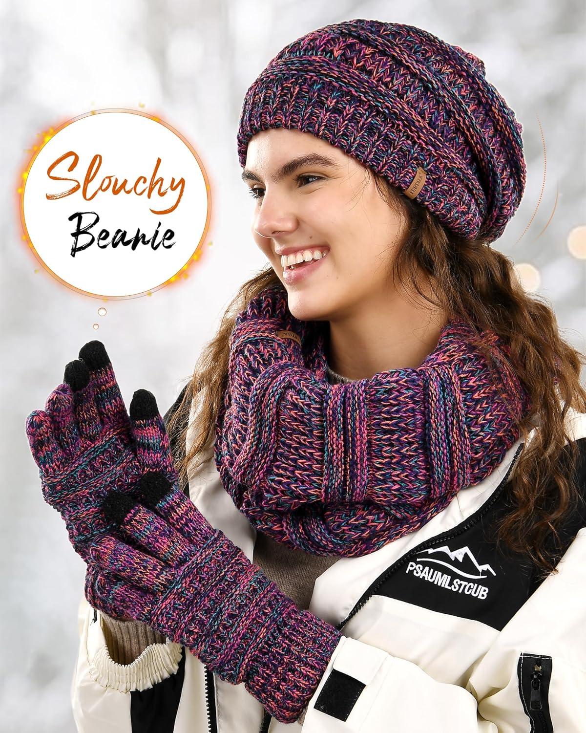 FURTALK Womens Winter Hat Gloves Scarf Set Gift Slouchy Beanie Touchscreen Gloves for Women(Multicolor)