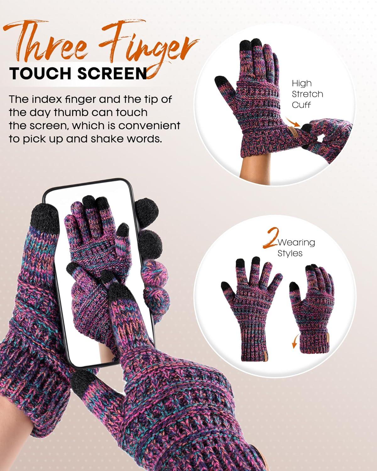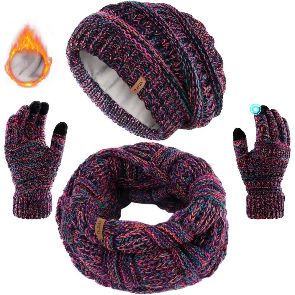imageFURTALK Womens Winter Hat Gloves Scarf Set Gift Slouchy Beanie Touchscreen Gloves for WomenMulticolor