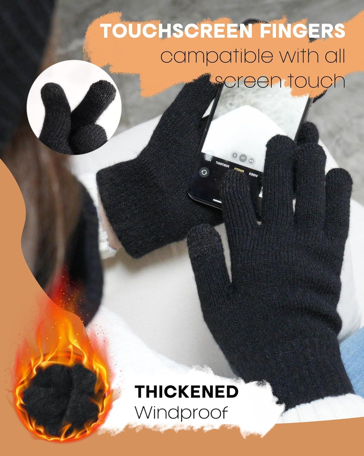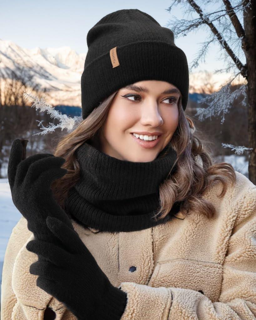 imageFURTALK Womens Winter Hat Scarf Gloves Set Knitted Thick Beanie Touchscreen Gloves Neck Warmer for Men WomenBlack