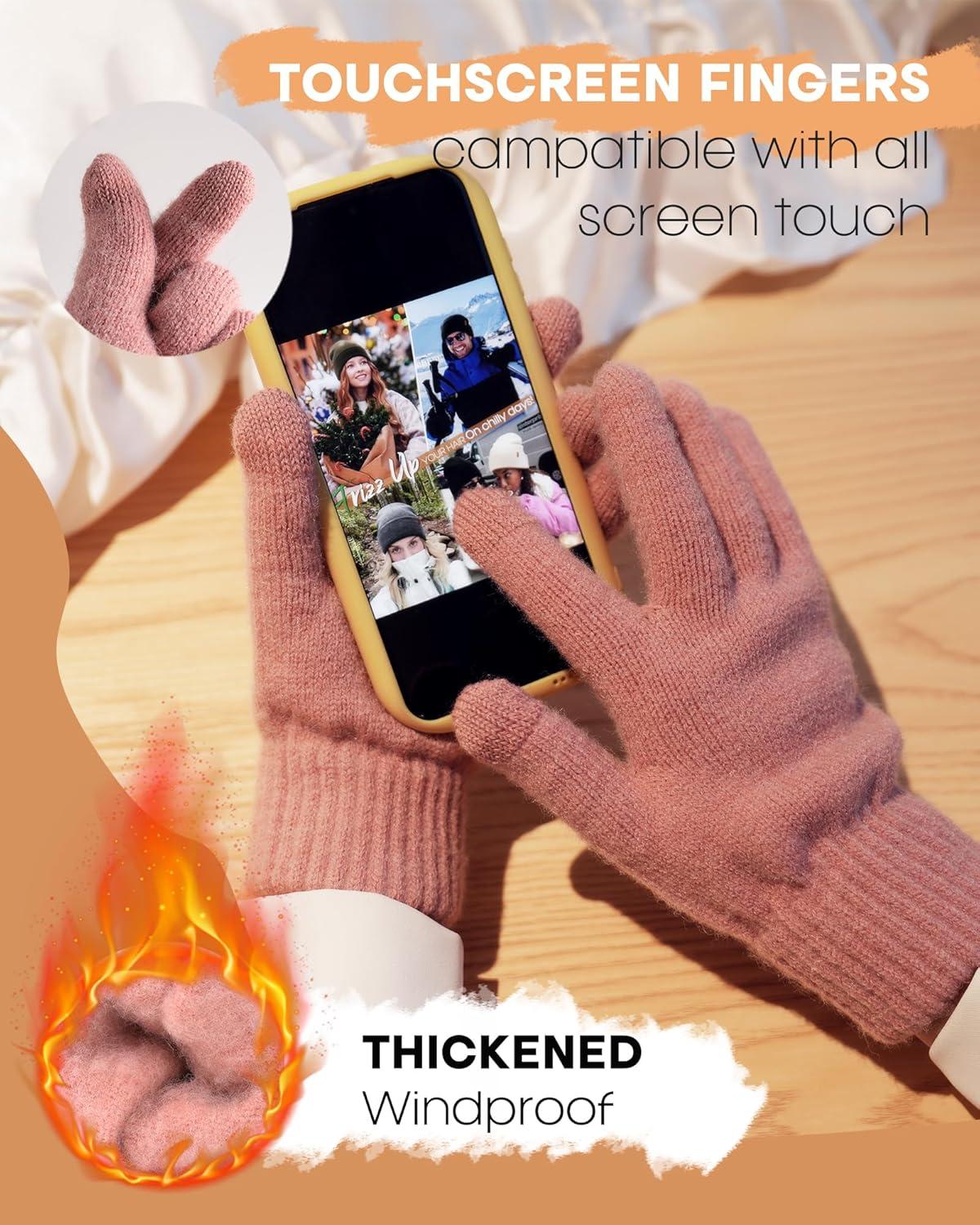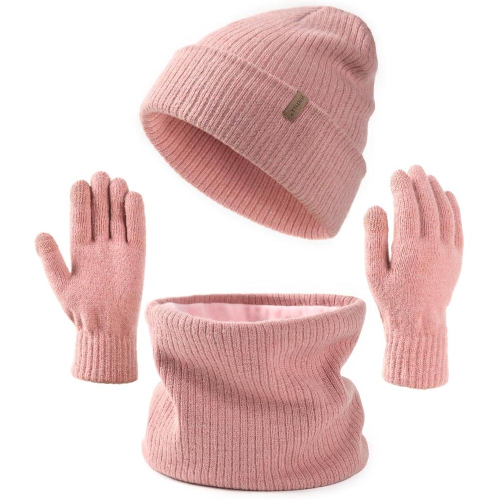 imageFURTALK Womens Winter Hat Scarf Gloves Set Knitted Thick Beanie Touchscreen Gloves Neck Warmer for Men WomenPink