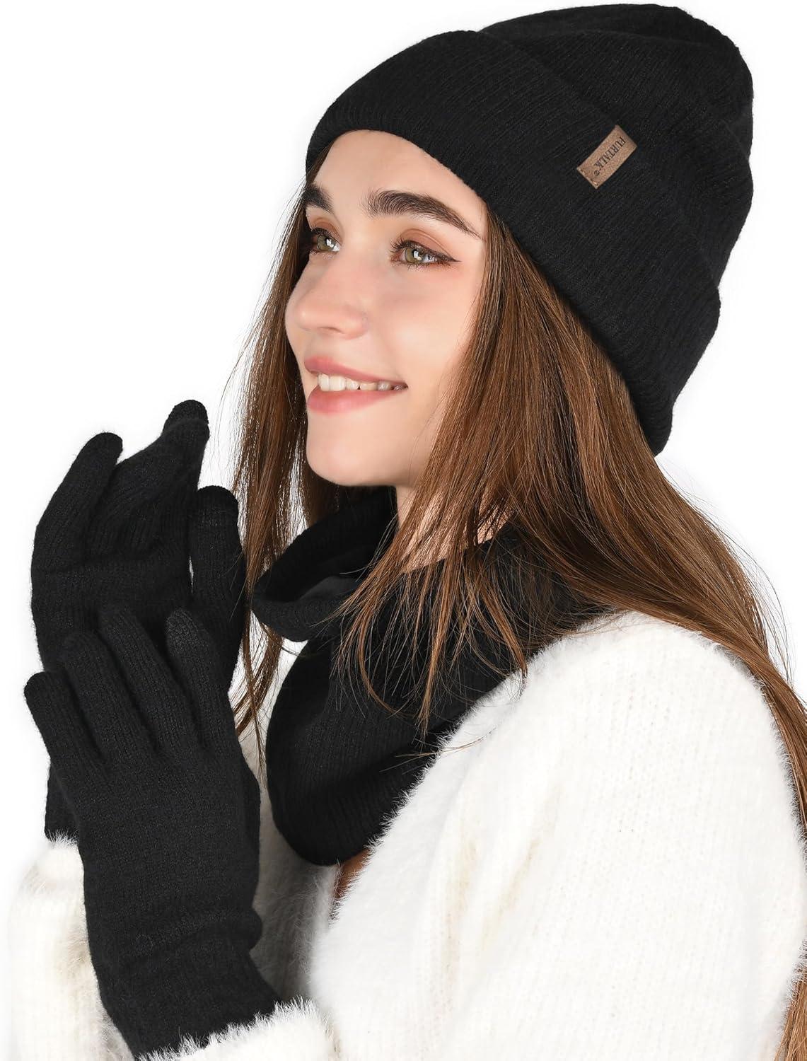 imageFURTALK Womens Winter Hat Scarf Gloves Set Knitted Thick Beanie Touchscreen Gloves Neck Warmer for Men WomenDark Grey