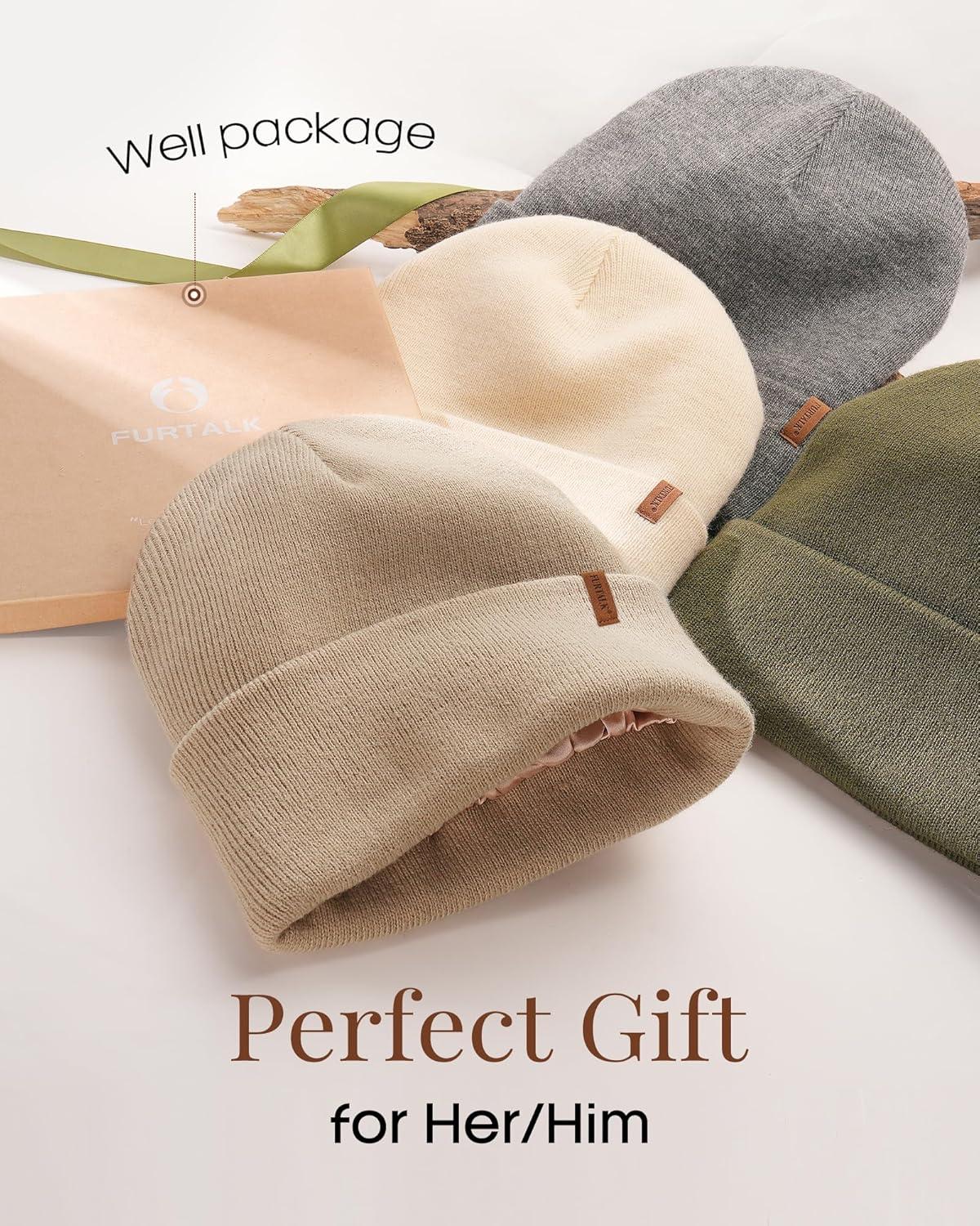 imageFURTALK Womens Winter Warm Satin Lined Beanie Hats Silk Lining Unisex Knit Slouchy CapsBlackgraygreen