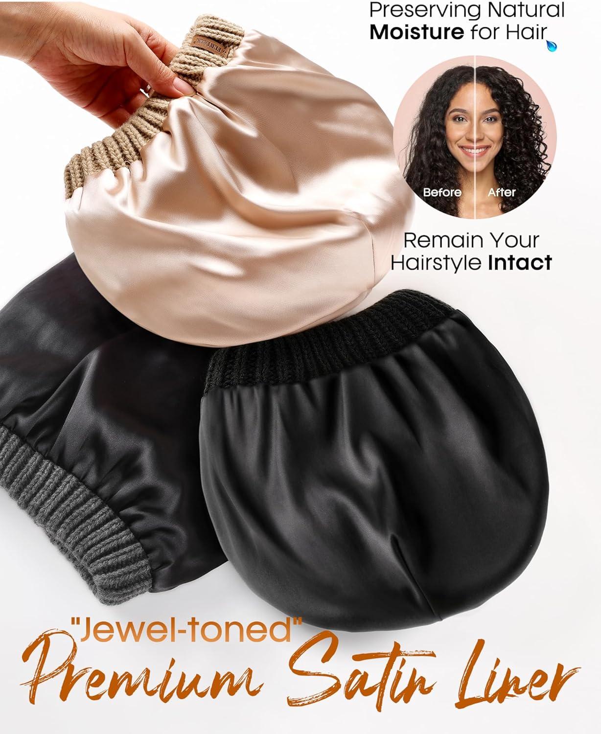 FURTALK Womes Slouchy Winter Beanie Knit Hat Satin Lined 3 Pack Thick Warm Fashionable Skull Cap(Black+dark Grey+beige)
